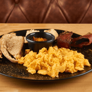 Pan de masa madre o arepa, acompañado de huevo revuelto, hogao de la casa y una proteína de tu elección. PROTEÍNAS: Con costo adicional según tu elección... Carne desmechada + $3,500. Pollo desmechado + $3,500. Tocineta + $2,500. Salchicha parrillera+ $2,500. Chorizo+ $2,500. Carne molida+ $3,500.