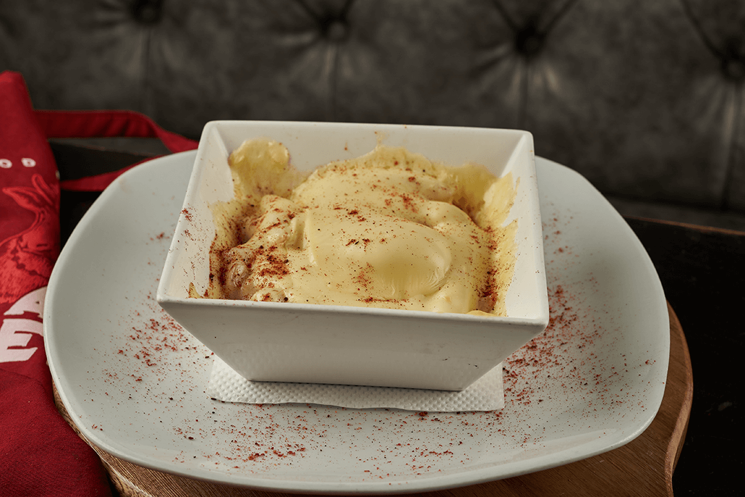 Maicitos, pollo desmechado, tocineta, queso doble crema y salsa de la casa.