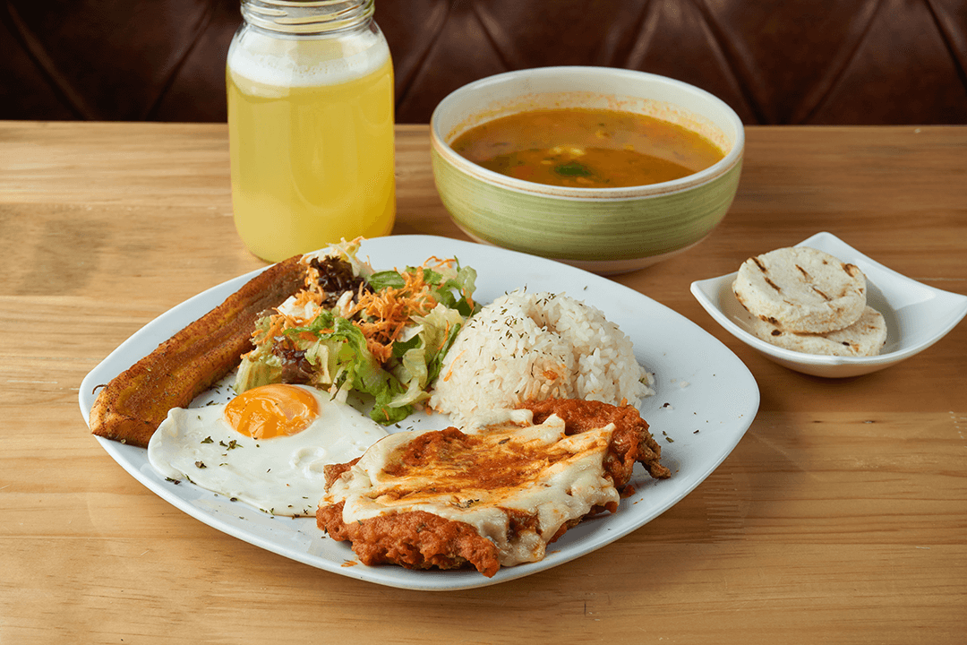 Arma tu menú a tu gusto eligiendo entre 12 tipos de proteínas, 4 variedades de sopas y 3 opciones de guarniciones. ¡La bebida es ilimitada!
